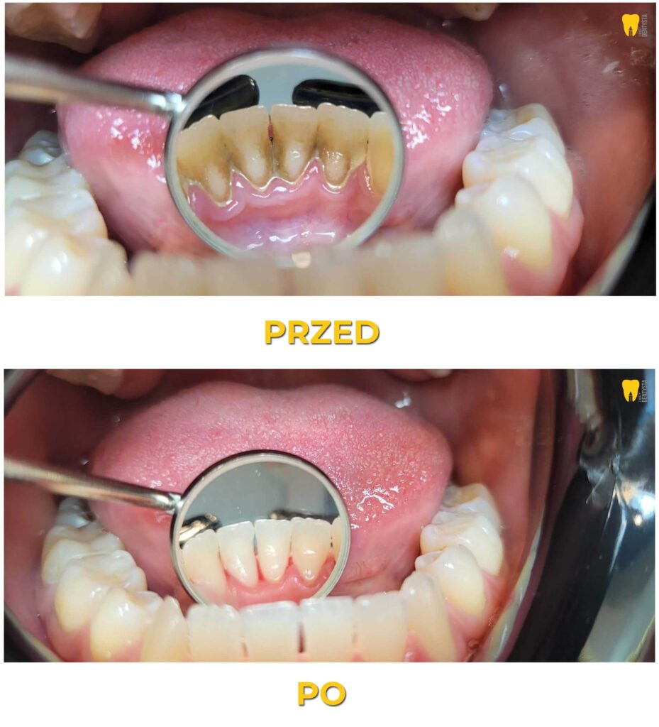 In our clinic, dental cleaning is performed using the advanced Air Flow Prophylaxis Master equipment, which ensures a high level of comfort during the procedure. During scaling, patients feel only warm water, and the erythritol-based powder dissolves, eliminating any rough sensation. Thanks to the use of the finest powder with rounded edges, the treatment is gentle even for those with exposed tooth necks. That’s why we can confidently say that today’s dental cleaning, thanks to the latest technology and our skilled hygienists, is completely painless. Of course, for particularly sensitive patients, there is always the option of free anesthesia.