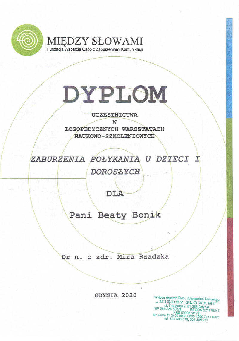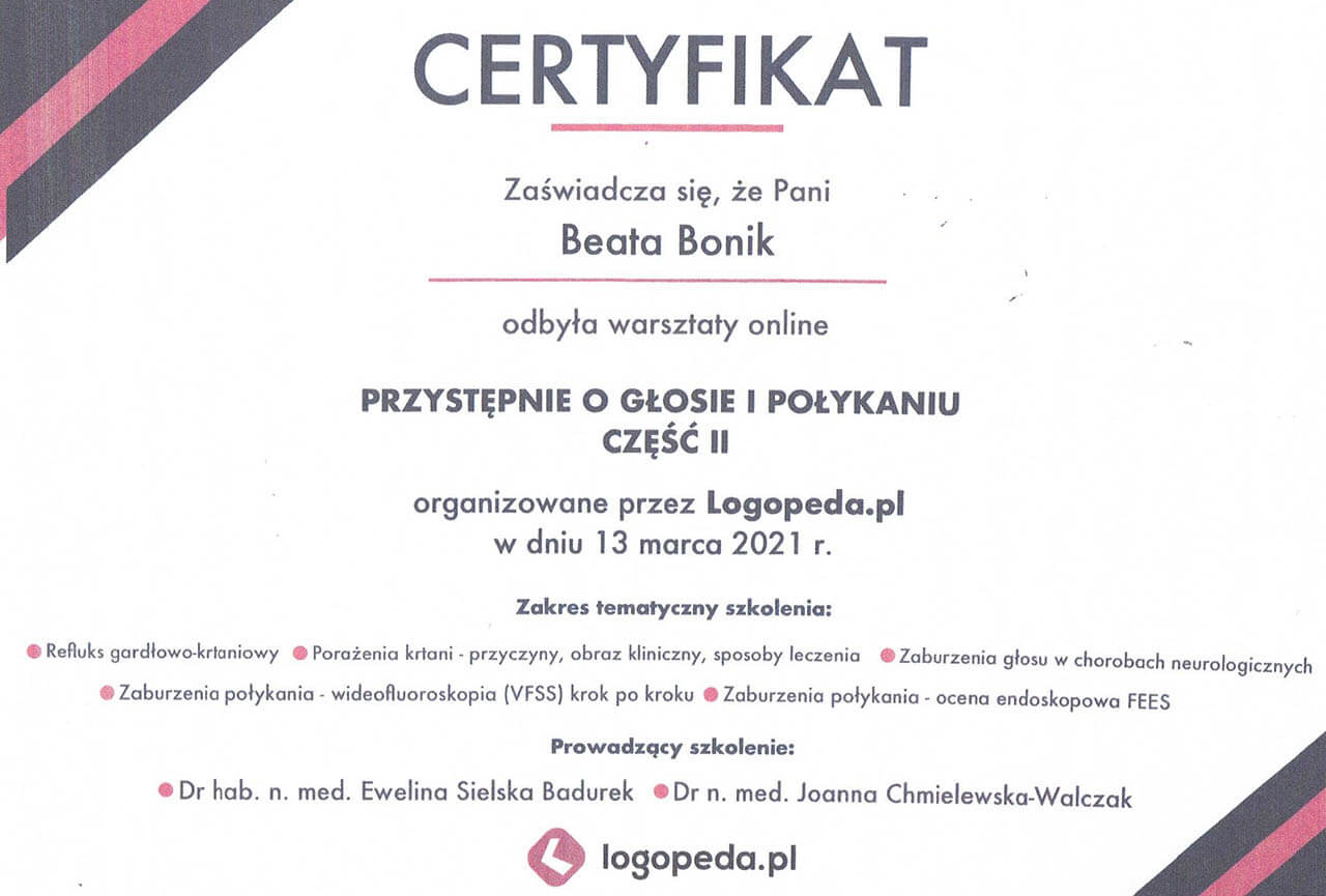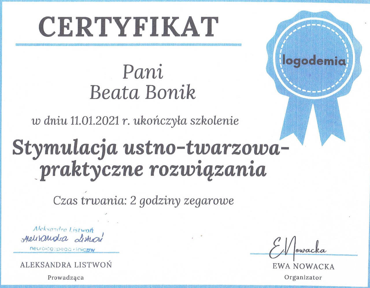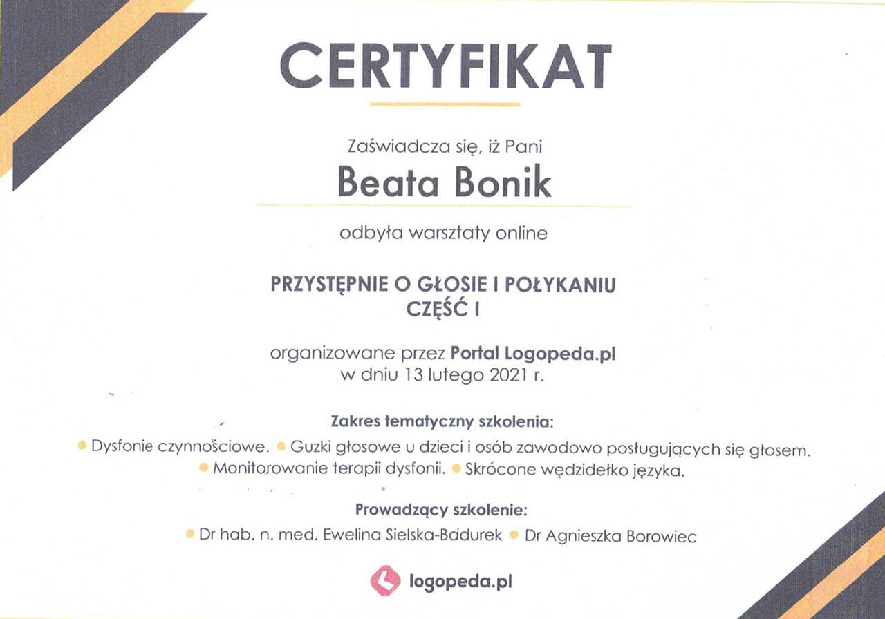 Logopeda z ponad dwudziestoletnim stażem. Specjalistka od mowy, głosu i wszystkiego, co związane z komunikacją - od pierwszego „aaa” po najbardziej zawiłe zbitki głoskowe.