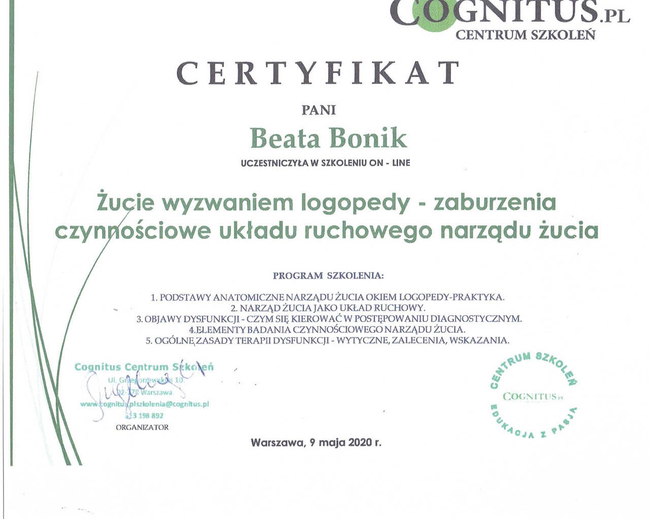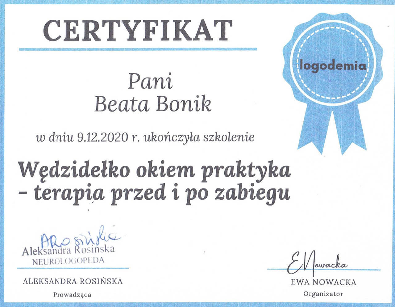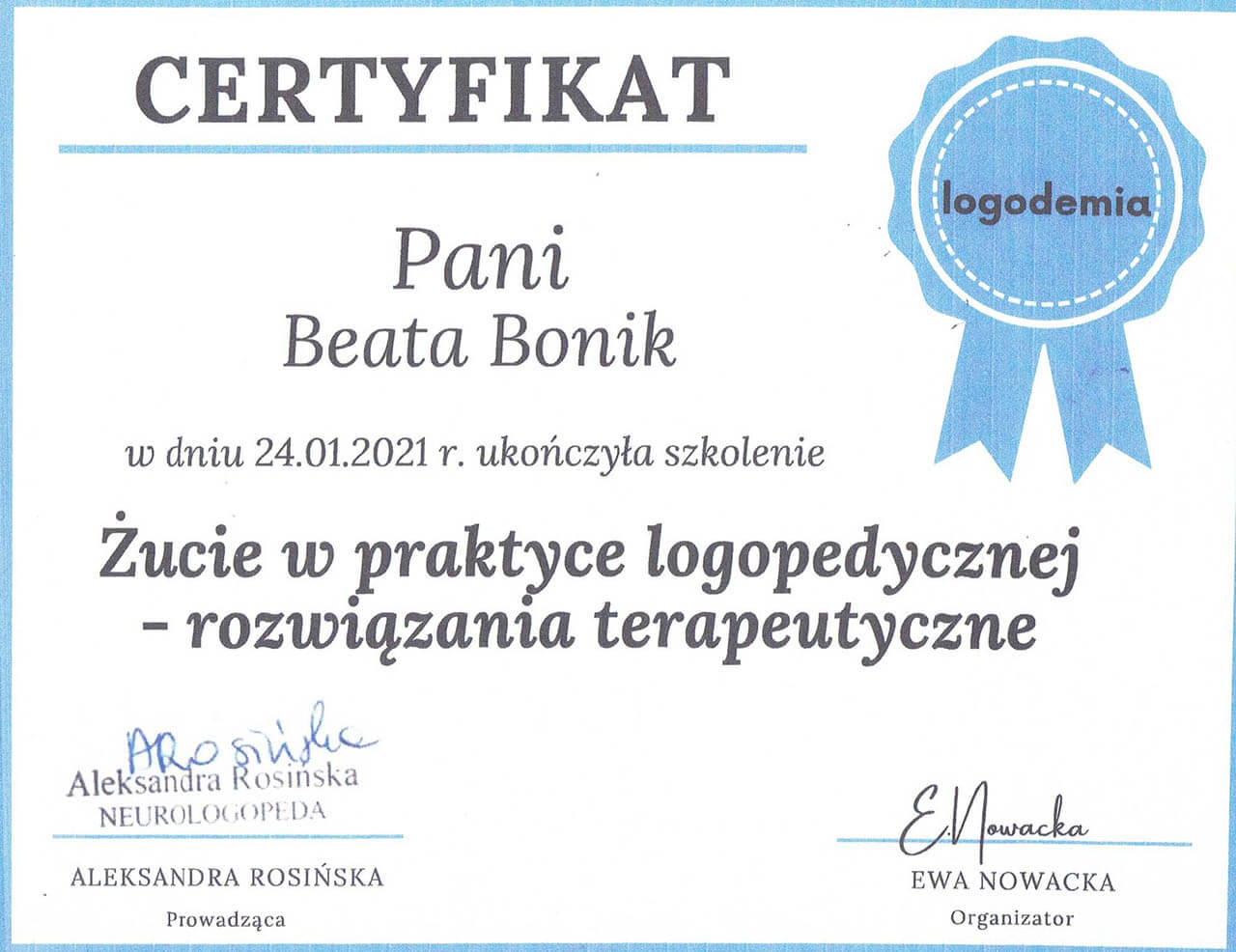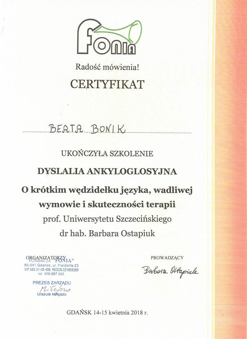 Logopeda z ponad dwudziestoletnim stażem. Specjalistka od mowy, głosu i wszystkiego, co związane z komunikacją - od pierwszego „aaa” po najbardziej zawiłe zbitki głoskowe.